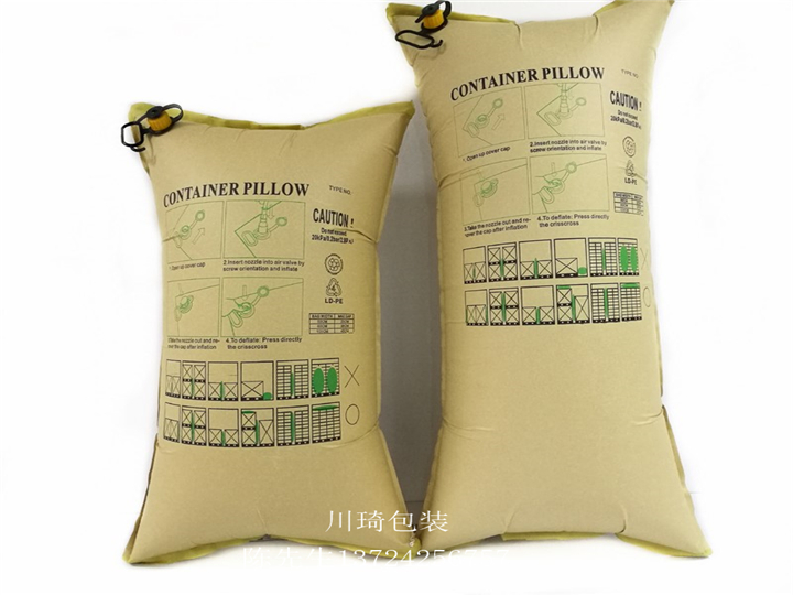 运输中发生货损最普遍的因素是:运输过程中来自前后或左右的货物之间的碰撞而造成包装破损。集装箱充气袋具有单向逆止气阀、安全不漏气、放气迅捷、密闭牢固、可承受七吨以上的压力,广泛应用于集装箱、海运、拖车、火车等各种运输方式中;填充货物之间的空隙,协助固定位置,支撑货物因摇晃而产生的重量,吸收震动,保护运输途中的货物,避免移动和相互碰撞,起到缓冲,防倒塌等作用使货物安全无损;特别适用于托盘、整板、成批集装箱化运输的货物。也作为特殊货物在集装箱内定位使用。充气袋使用方便、快捷,可大大节约装箱时间,提高装卸速度、效率,降低运输成本,可以重复使用,更是国际货物运输中原木或发泡胶的新型环保替代产品,已经是国际上越来越普遍采用的集装箱填充方式。产品符合出口欧美国家环保标准。