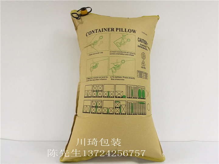 运输中发生货损最普遍的因素是:运输过程中来自前后或左右的货物之间的碰撞而造成包装破损。集装箱充气袋具有单向逆止气阀、安全不漏气、放气迅捷、密闭牢固、可承受七吨以上的压力,广泛应用于集装箱、海运、拖车、火车等各种运输方式中;填充货物之间的空隙,协助固定位置,支撑货物因摇晃而产生的重量,吸收震动,保护运输途中的货物,避免移动和相互碰撞,起到缓冲,防倒塌等作用使货物安全无损;特别适用于托盘、整板、成批集装箱化运输的货物。也作为特殊货物在集装箱内定位使用。充气袋使用方便、快捷,可大大节约装箱时间,提高装卸速度、效率,降低运输成本,可以重复使用,更是国际货物运输中原木或发泡胶的新型环保替代产品,已经是国际上越来越普遍采用的集装箱填充方式。产品符合出口欧美国家环保标准。