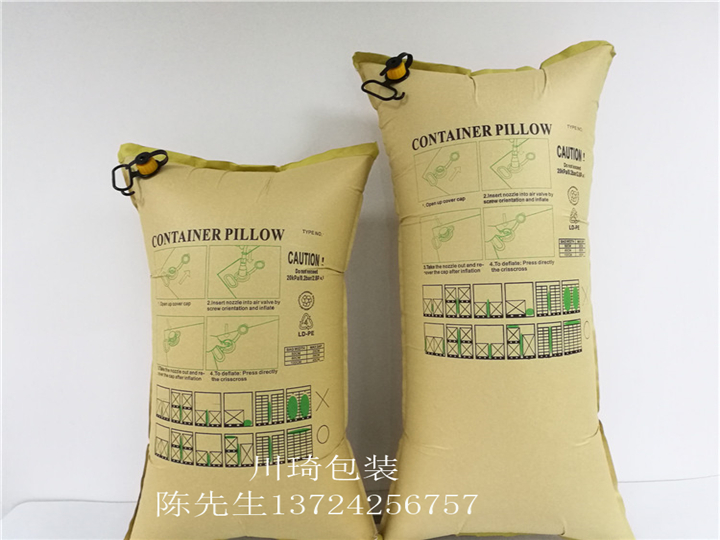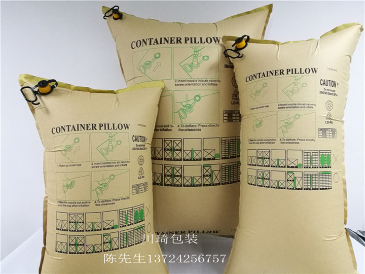 运输中发生货损最普遍的因素是:运输过程中来自前后或左右的货物之间的碰撞而造成包装破损。集装箱充气袋具有单向逆止气阀、安全不漏气、放气迅捷、密闭牢固、可承受七吨以上的压力,广泛应用于集装箱、海运、拖车、火车等各种运输方式中;填充货物之间的空隙,协助固定位置,支撑货物因摇晃而产生的重量,吸收震动,保护运输途中的货物,避免移动和相互碰撞,起到缓冲,防倒塌等作用使货物安全无损;特别适用于托盘、整板、成批集装箱化运输的货物。也作为特殊货物在集装箱内定位使用。充气袋使用方便、快捷,可大大节约装箱时间,提高装卸速度、效率,降低运输成本,可以重复使用,更是国际货物运输中原木或发泡胶的新型环保替代产品,已经是国际上越来越普遍采用的集装箱填充方式。产品符合出口欧美国家环保标准。
