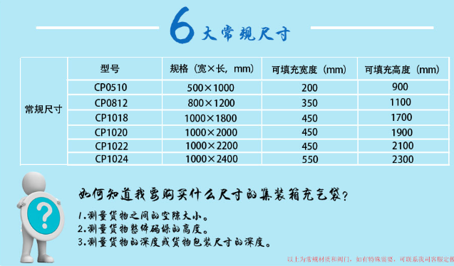 川琦包装充气袋的常用规格: