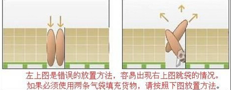 避免移动和相互碰撞,起到缓冲,防倒塌等作用使货物安全无损;特别适用于托盘、整板、成批集装箱化运输的货物。也作为特殊货物在集装箱内定位使用。充气袋使用方便、快捷,